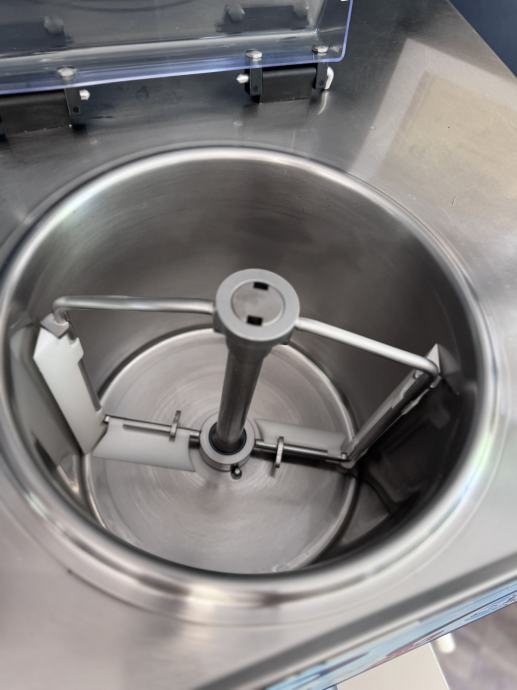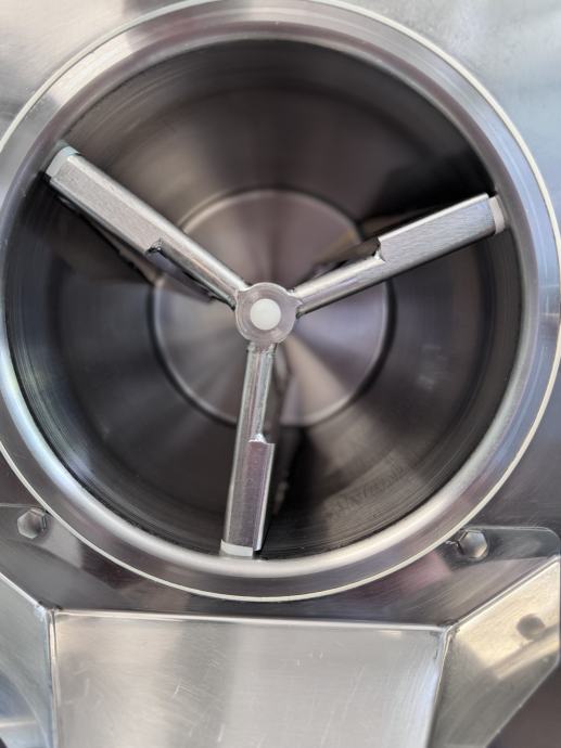 Monoblok posuda i samoblokirajuća čelična mješalica s pomičnim strugačima na stranicama i dnu posude.