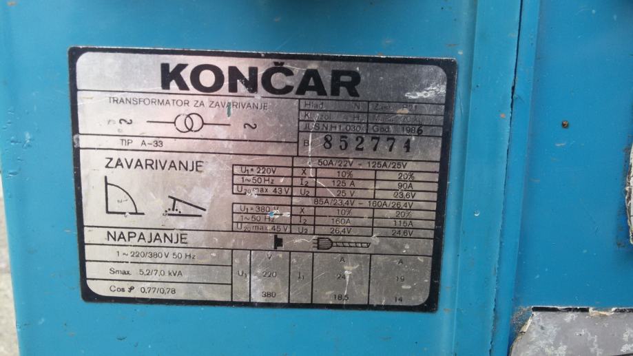 Prodajem aparat za varenje KONČAR, tip A-33.