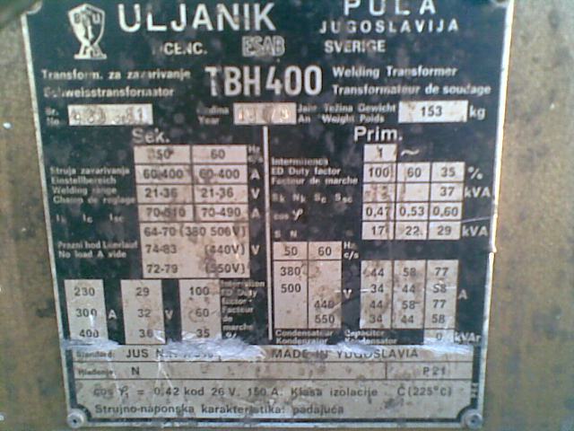 Aparat za zavarivanje ULJANIK - ESAB TDH 400 zamjena za agregat