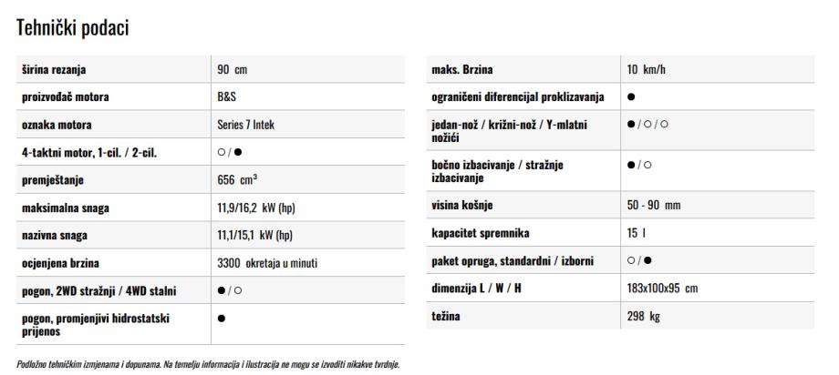Konstruirana za obradu trave i gustog raslinja do visine od 1,2 metra, model AS 900 Enduro je robustan stroj s dugim vijekom trajanja. Dvocilindrični Briggs & Stratton motor, obujma 656 cm3 isporučuje do 16,2 ks i opremljen je pumpom ulja i goriva. Bočno pražnjenje kosilice i mehanizam noža s čvrsto pritegnutim noževima s klatnim ležajem nudi zaštitu u slučaju udara, budući da se noževi povlače umjesto da pretrpe štetu. U svakom slučaju, okretni noževi s dvostranim oštricama mogu se zamijeniti. AS 900 Enduro kosilica se uključuje preko magnetne spojke noža, dok se rezne visine mogu prilagoditi na 4 razine, od 50 do 90 cm. Hidrostatski prijenos i dodatni sustav hlađenja omogućavaju kontinuirani rad, a diferencijal s ograničenim proklizavanjem se u otežanim uvjetima može uključiti nožnom pedalom.