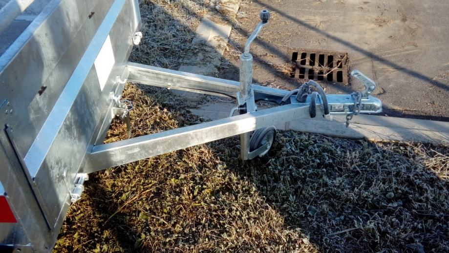 - ima šasiju po cijeloj dužini prikolice, mogučnost ručnog kipanja ( natrag).Prikolica je napravljena od toplo cinčanog lima.
