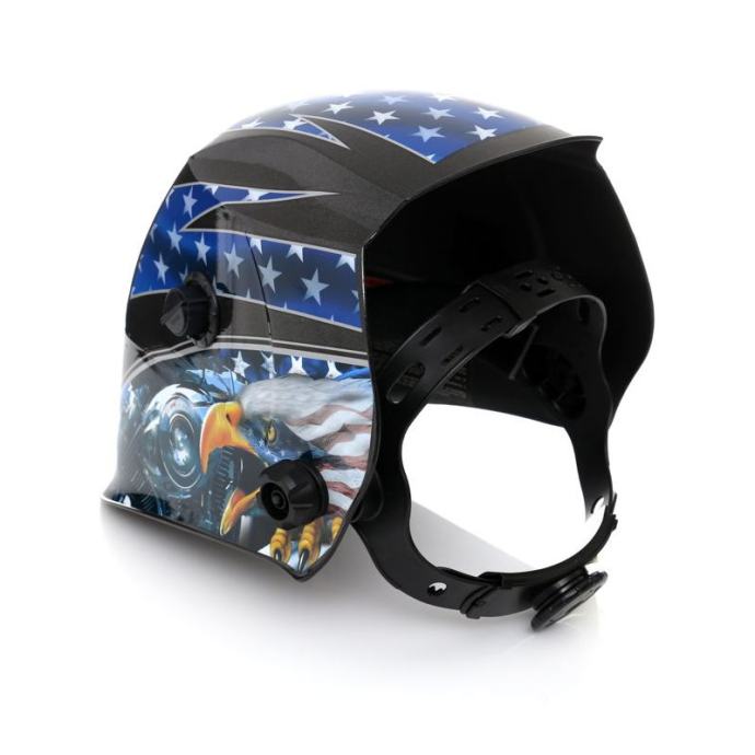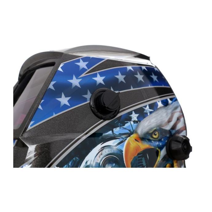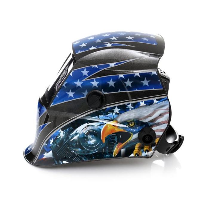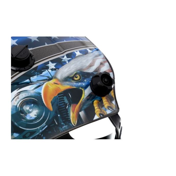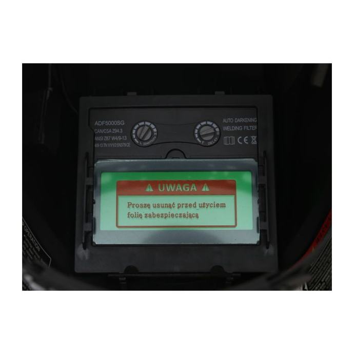 Profesionalna kaciga za zavarivanje s automatskim zatamnjenjem, dizajnirana za rad tijekom zavarivanja s metodama kao što su MMA, Mig Mag i TIG.