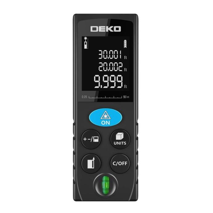 Mjerač laserskog udaljenosti praktičan je uređaj koji vam omogućuje precizno mjerenje udaljenosti između objekata. Deco Alati ima točnost od ± 2 mm i doseže do 50 m. Omogućuje vam da odaberete između jedinica kao što su brojila, cipele i palčevi, a jednostavan je za upotrebu s ugrađenim LCD zaslonom. Također ima vodenu ravnotežu i nudi nekoliko korisnih značajki. Pokreću ga 2 AAA baterije (nisu pričvršćene).