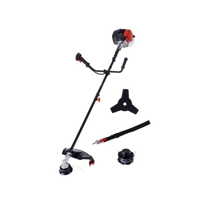 2u1 benzinski trimer/frezer za košnju trave i rezanje gušće vegetacijeradi s glavom s najlonom za široko košenje te s 3-zupčastim nožem za tvrđe korove i rubne zoneprebacivanje između sustava rezanja pokriva tipične zadatke oko okućnice, voćnjaka i terena gdje kosilica ne prolaziupravljanje je izvedeno preko bike ručke (podesiva) i sigurnosnih komandi (stop prekidač i blokada gasa) Tap & Go (tip-automatika) produljuje nit bez rastavljanja, što skraćuje zastoje. Anti-vibracijska izvedba i naramenica rasterećuju rad pri dužem košenju Tehnički podaci Model BCH3300PB Tip motora 2-taktni benzinski Zapremina motora 32,6 cm³ Snaga 0,9 kW (1,22 PS) Radna širina (nit) 430 mm Radna širina (nož) 255 mm Nož 3-zupčasti Promjer provrta noža 25,4 mm Spremnik goriva 0,9 L Pokretanje Ručni starter (potezni) Duljina stroja 1870 mm Širina stroja 617 mm Visina stroja 486 mm Masa 8 kg ]]>