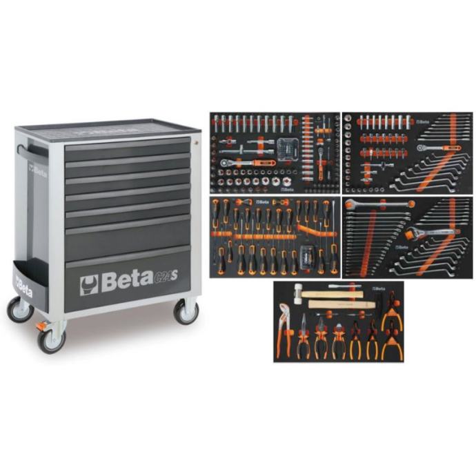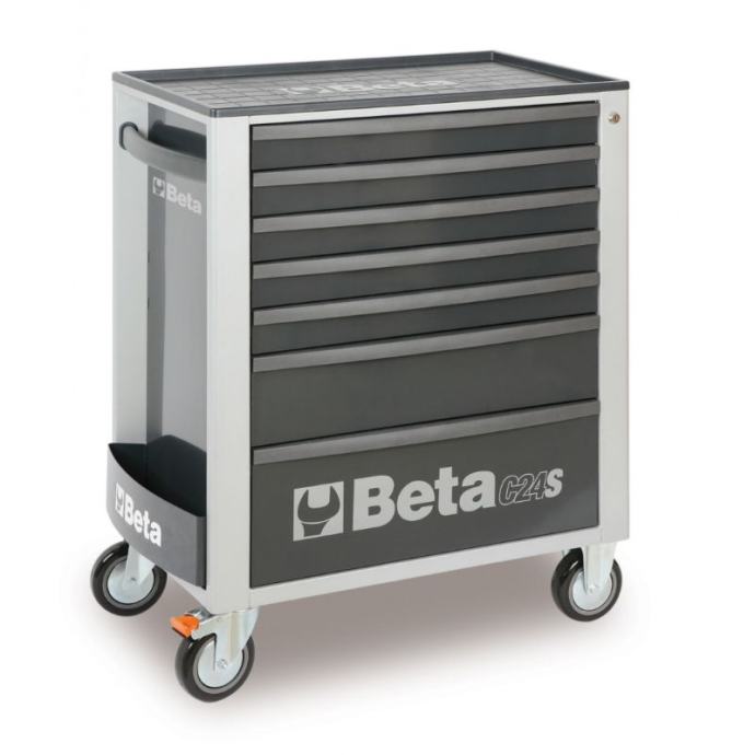 Beta kolica za alat kao što su ova nude svakom profesionalnom majstoru sav potreban prostor i fleksibilnost za pohranu i nošenje alata i opremekolica za alat Beta 7 ladica siva 309 komada 2400S O7/E-M ima nekoliko ladica i posebno je napravljena da izdrži udarcepomislite na zaobljene rubove i posebne vodilice utovarivača kuglica u ladicama za brzo otvaranjeormarić ima čvrstu sigurnosnu bravuto uključuje reverzibilni ključ. Kolica za alat se isporučuju sa setom alata od 309 komadaTehnički opis: broj ladica 7dimenzije pet gornjih ladica 588 x 367 x 70 mm (šxdxv)dimenzije šeste ladice 588 x 367 x 140 mm (ŠxDxV)dimenzije sedme ladice 588 x 367 x 280 mm (ŠxDxV)promjer kotača 125 mmfiksni kotači 2okretnljivi kotači 2težina 59 kgstatičko opterećenje 800 kgmaterijal prednji najlonboja: Siva]]>