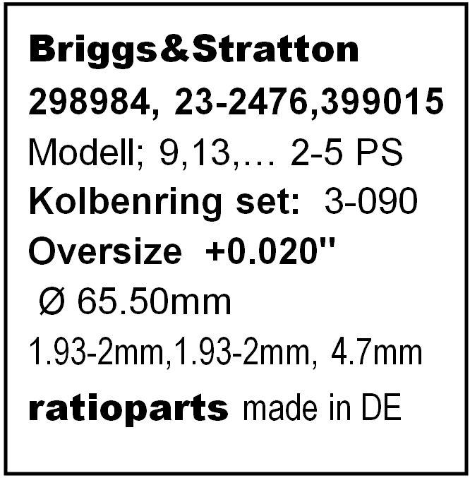 druga specijala, znači promjer +0,020'' inch - 65,50mm. Debljine 1,93.., 1,93mm, 4,7mm. Za vrtne kosilice i ostale motore proizvedene prije 1996g. mislim. Na broj 098558856