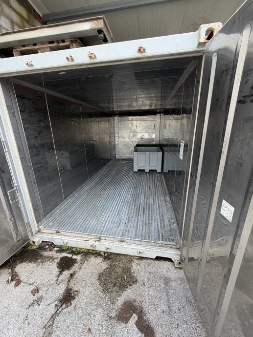 Prodajem brodski frigo kontejner opremljen rashladnim agregatom Daikin. Kontejner je namijenjen za transport i skladištenje robe koja zahtijeva kontroliranu temperaturu. Unutrašnjost je izrađena od nehrđajućeg čelika s rebrastim podom pogodnim za viljuškar.