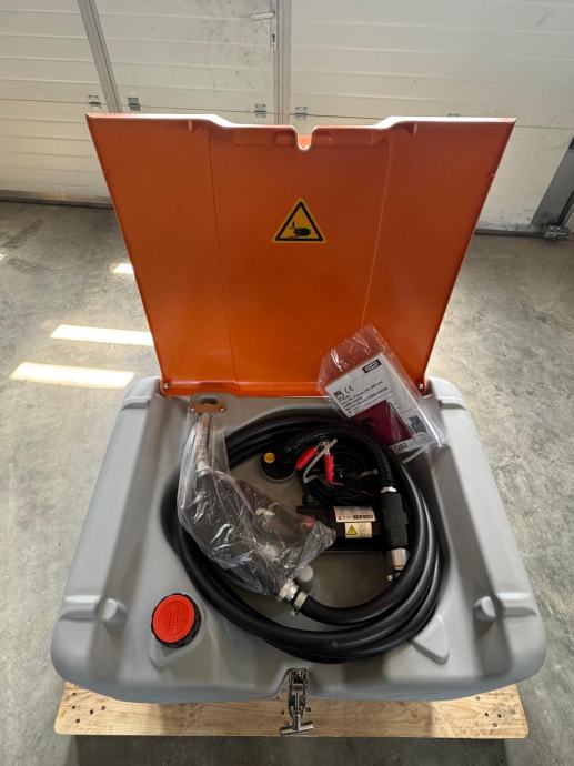 Spremnik je opremljen 12V pumpom (40 L/min), automatskim pištoljem za gorivo, cijev 4 m, kabel 4 m, poklopac,...