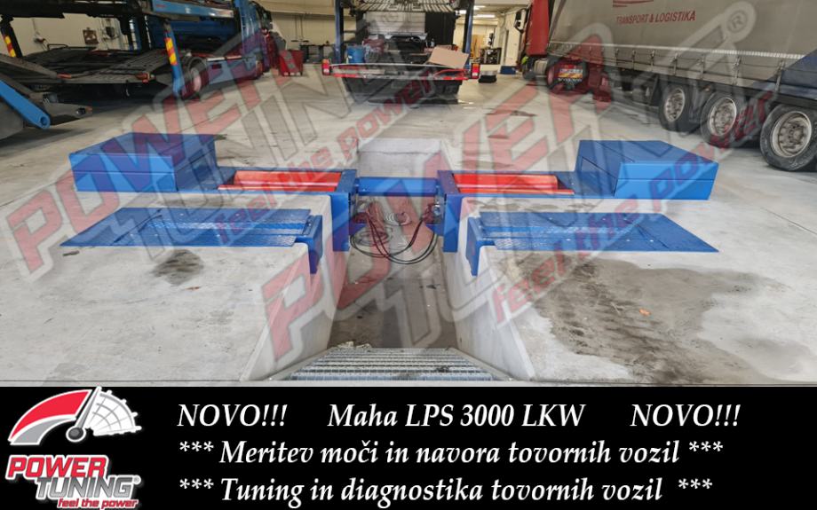 Mjerenje se vrši na modernom dinamometru renomiranog proizvođača MAHA, model LPS 3000 LKW. Dinamometar ima ugrađena dva električna retardera, ukupne snage 700kW, s kojima možemo mjeriti snagu kamiona na kotačima do 660kW (cca 900KS). S dodatno ugrađenim IDLE valjcima osigurali smo mjerenja i na kamionima s pogonom na sve kotače (4WD).