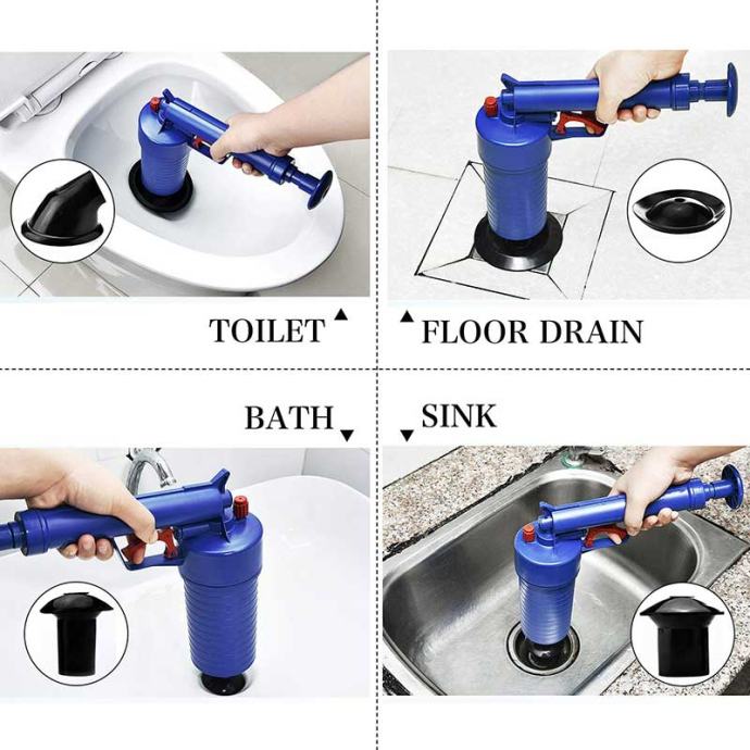 Zahvaljujući ovom jedinstvenom uređaju, zaboravit ćete jednom zauvijek za sve probleme povezane s začepljenim cijevima ili odvodima. Tlasne cijevi je gadget koji vam omogućuje da kroz zrak gurate bilo koja začepljena mjesta u vašem domu. Komplet sadrži kvalitetan plastični pištolj i čak 4 pričvršćivanja različitih oblika koji će se prilagoditi odvodima u toaletnoj zdjeli, sudoperu, sudoperu, tuširanju ili kadi. Ne morate biti opterećeni standardnim klipovima, punim bakterija i ekološki štetnih korozivnih deterdženata.
