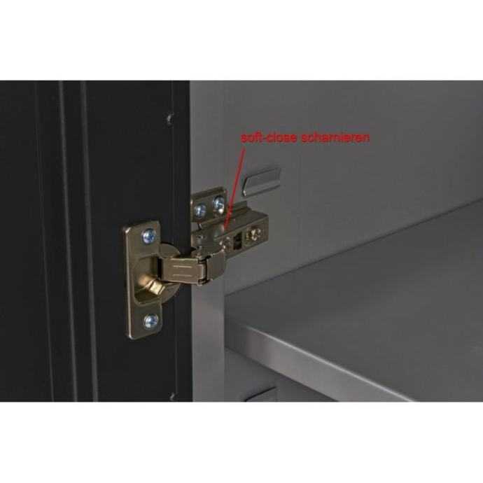 -ovaj niski ormarić za alat opremljen je luksuznim soft-close šarkama i luksuznim crvenim aluminijskim profilima za otvaranje vrata
