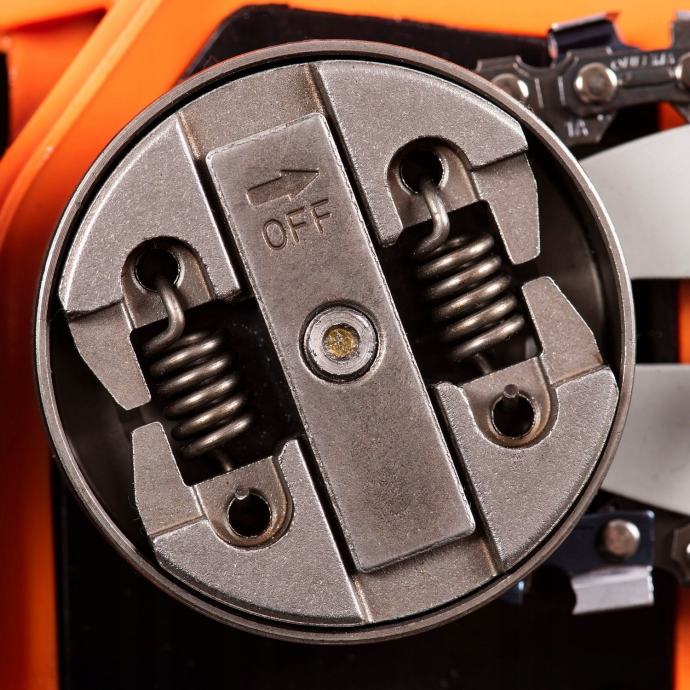 Pila je opremljena posebnim štitom za ruke i ručicom koja vam omogućuje da se objesite na pojas.