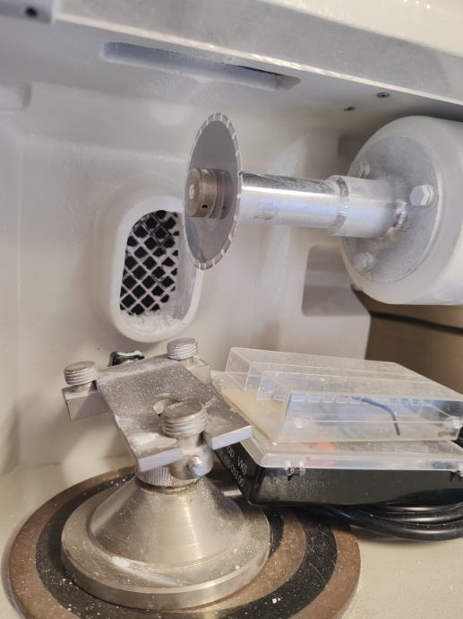 Rotirajuća rezna ploča (disk): nalazi se unutar komore i reže materijal abrazivnim diskom.