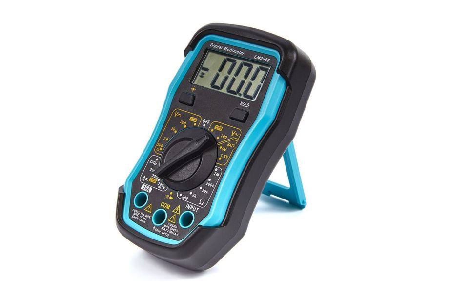 Ovaj multimetar ima vrlo čvrsto profesionalno kućište, s dobrim upravljačkim gumbima, čvrstim okretnim prekidačem, jasno čitljivim LCD zaslonom visokog kontrasta, prekrasnim gumenim odbojnikom i sklopivom nogom pomoću koje se multimetar može postaviti u jednostavno mjesto pročitati kutni položaj. Radi na jednu bateriju od 9V. Multimetar za mjerenje svih osnovnih električnih veličina. Ručni odabir raspona.3 1/2 Lokalni zaslon s opcijom pozadinskog osvjetljenja. Dioda za ispitivanje kontinuiteta. Testirajte stanje baterije 1.5V i 9V.HOLD tipka za zaključavanje prikazanih podatakaDC napon: 600Vnapon izmjenične struje: 600VIitosmjerna struja: 10Aotpor: 2Mkontinuitet: