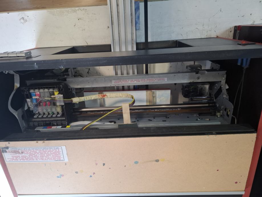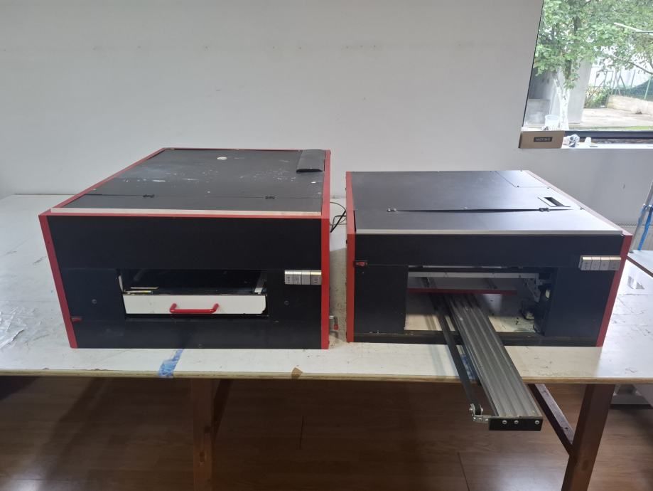 Prodajem 2 DTG printera,koristeni par godina,u dobrom su stanju.Uz njih dobijete jos 4 rama(3 velika i 1 za djecije majice).Printeri u njima su epson 1400.Za sva ostala pitanja posaljite mi poruku na Watshapp imate broj u opisu.Ovaj s lijeve strane je dugacak oko 2 metra,a ovaj s desne strane je izmedu jedan i jedan i po.