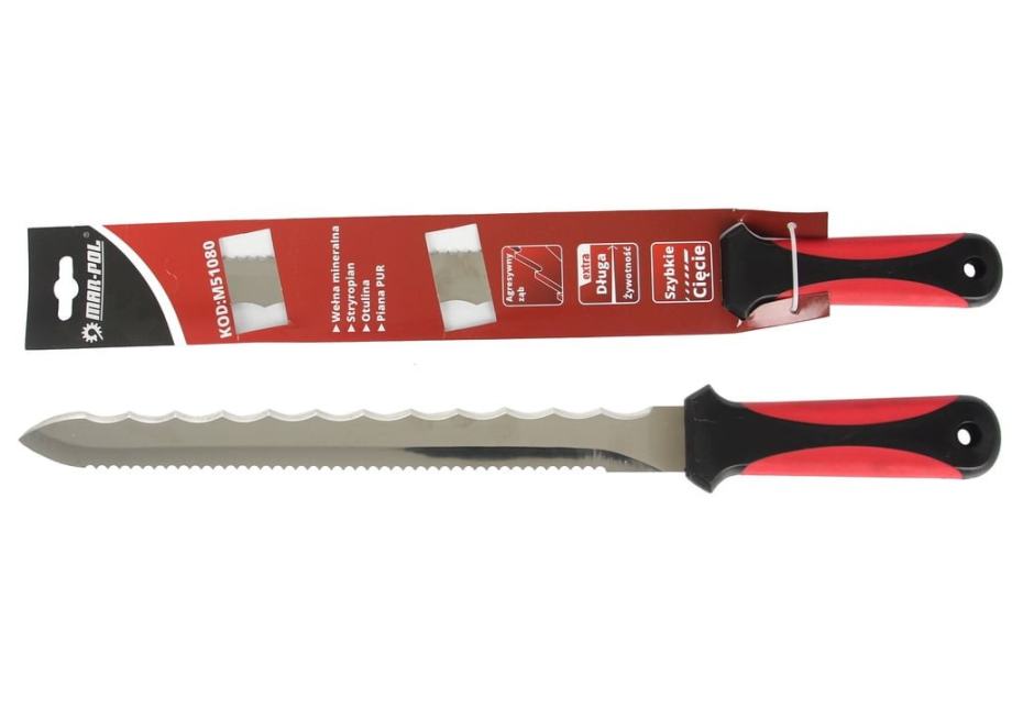 Nož polistirena koristan je u mnogim situacijama obnove i konstrukcije. S njom, polistiren jednostavno izrežite u pravi oblik, obrežite mineralnu vunu i odrežete višak čvrste izolacijske pjene. Izrez će biti izuzetno estetski i precizan. Proizvod je opremljen izdržljivom, profiliranom ručkom, zahvaljujući kojoj je proizvod izuzetno udoban za upotrebu. Plastika s ne -klizanjem svojstava je jamstvo za sigurno prianjanje, tako da nema straha da će vam slučajno izvući nož iz ruke. To je posebno važno kada radite na visini. Budite vrlo oprezni prilikom rezanja materijala. Proizvod je vrlo Isterin kontakt s kožom može prouzrokovati oštećenje.