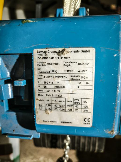 Prodajem električnu lančanu dizalicu - Demag DC-Pro 80kg.