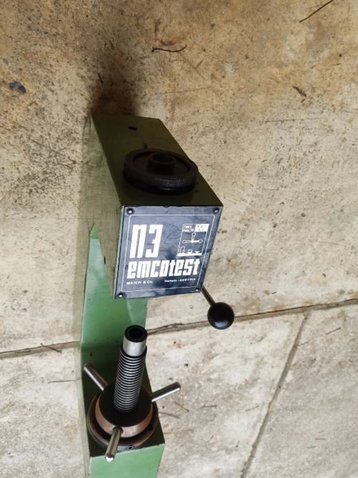 Prodajem emcotest,za mjerenje tvrdoće.Nije u kompletu,fali mu mjerni sat i dio na koji se stavlja komad,kojemu se mjeri tvrdoća,ali je ispravan,dio koji se utiskuje u testirani komad.