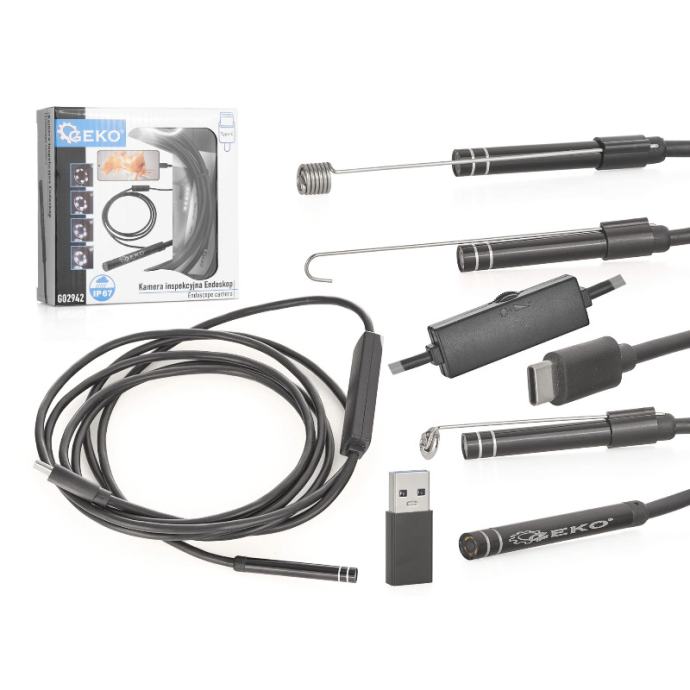 Endoskop radi s pametnim telefonima i tabletima s Android verzijom iznad 6.0 koji podržavaju OTG standard. Set uključuje set dodataka (kukica, magnet, ogledalo)