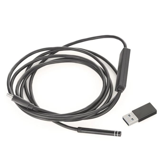 Vodootporna USB endoskopska kamera s ugrađenim LED osvjetljenjem. Kamera je okružena sa šest LED dioda s podesivim intenzitetom svjetla. To vam omogućuje da pregledate mjesta gdje je potpuni mrak, npr. cijevi, ventilacijski kanali, kanali itd.