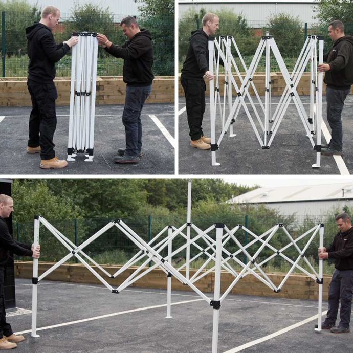 Izgrađena od čvrstog čeličnog okvira obloženog prahom i presvučena 420D Oxford ceradom otpornom na UV zračenje, Evolution Pop-up Workshop je nešto iznad bilo kojeg laganog ljetnog skloništa koje ste možda prije imali - to je pravi pop-up radni prostor za 4 godišnja doba* .