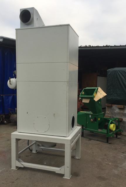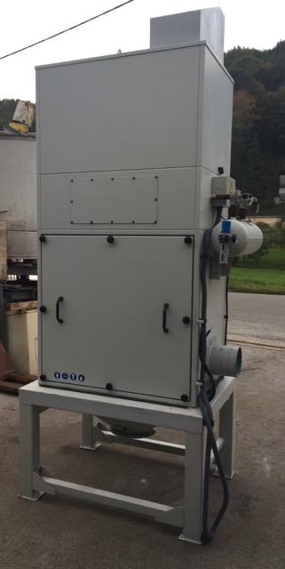 Filter sa patronama, za prečišćavanje zaprašenog zraka 3600m3/h, radne površine 30m2, sa srednjetlačnim ventatorom, pogon snage 4 kW, 2200 Pa, sa spremnikom za komprimirani zrak i programatorom za otresanje cartrig-a (patrona), te priključnim kutijama za ulaz i izlaz zraka, te izlaznim košem za odvojenu prašinu.
