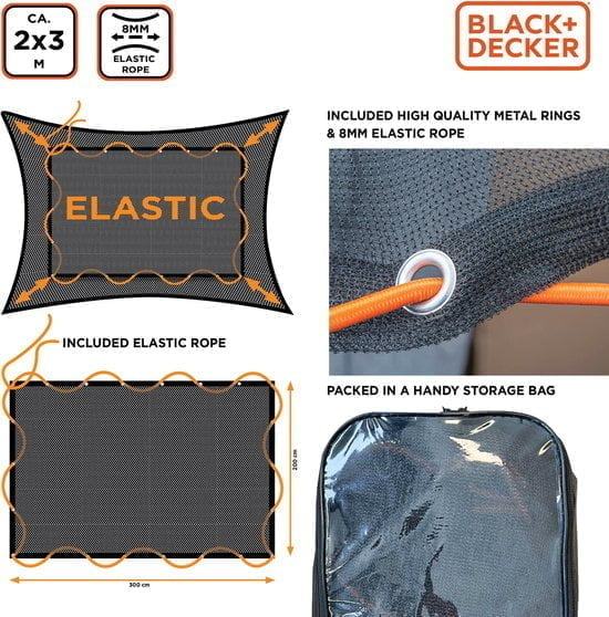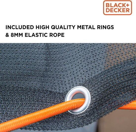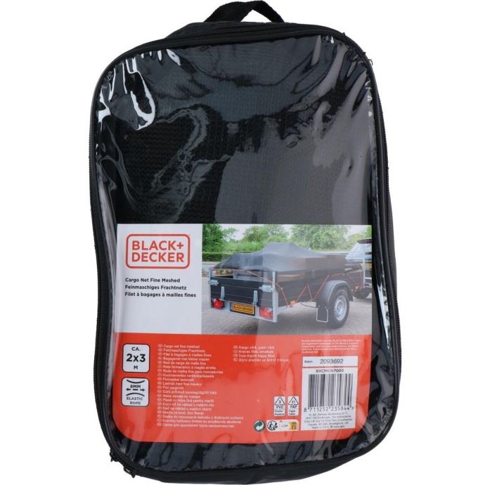 Black+Decker mreža daje vam siguran i pouzdan prijevoz teških ili pogrešno oblikovanih tereta. Prikladna teretna mreža posebno je dizajnirana kako bi vaša teretna tvrtka bila na mjestu tijekom transporta. Mreža prikolice izrađena je od izdržljivog konopa, koje je lako naprezanje preko tereta tako da ostane siguran na neravnim cestama. Neto prikolica opremljena je proširivim elastičnim pojasom debljine 8 mm, koji sigurno pričvrstite teretnu mrežicu na vašu prikolicu. Ova elastika osigurava da mreža ostane tijesna i sprječava klizanje ili kretanje tereta tijekom transporta.
