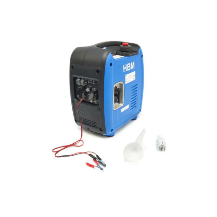 inverter generator od 1000 W s benzinskim motorom od 60 ccm isporučuje 1000 W (vršna snaga 1100 W) i opremljen je automatskom kontrolom brzine motora (ESC – Electronic Speed Control), koja prilagođava brzinu rada motora potrebama potrošnje, čime osigurava manju buku uz standardni 230 V AC izlaz, generator nudi i 12 V / 5 A izlaz za punjenje baterija te USB izlaz od 5 V / 2,1 A za punjenje pametnih uređajadolazi s lijevkom i priključnim kabelom za 12 V bateriju (uključujući stezaljke). napomena: generator se isporučuje bez ulja i neće se pokrenuti bez njega; preporučuje se korištenje proizvoda E100060-1L za punjenje ulja prije prvog pokretanjaTehnički podaci: ESC način rada za automatsku kontrolu brzine motoraizlazi: 230V AC, 12V DC, USB 5Vsnaga: 1000 W kontinuirana, 1100 W maksimalne snagebenzinski motor 60 ccmvrsta USB izlaza: 1.0A, 2.1Anazivna snaga: 1.000 Wneto težina proizvoda: 18.5 kgizlazna snaga: 230V, 12V, USB 1.0A, USB 2.1Aširina: 25.5 cmvisina: 45 cmduljina: 38 cmvrsta motora: 4-taktnivrsta svjećice: A7RTvrsta ulja: SAE10W-30kapacitet ulja: 0.31 lzapremnina cilindra: 60 cm³kapacitet spremnika goriva: 2.4 lgorivo: E5 / Euro 98]]>