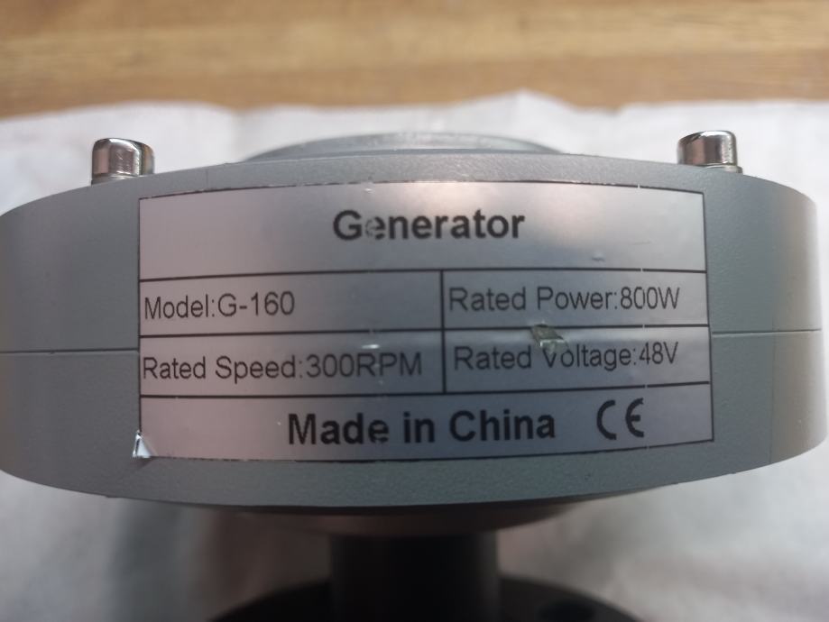 Snaga 800W. Napon 48V, naziva brzina od 100 do 500 RPM [optimalno 300 RPM], Promjer 162 mm, dužina169 mm, težina 4.2 kg.