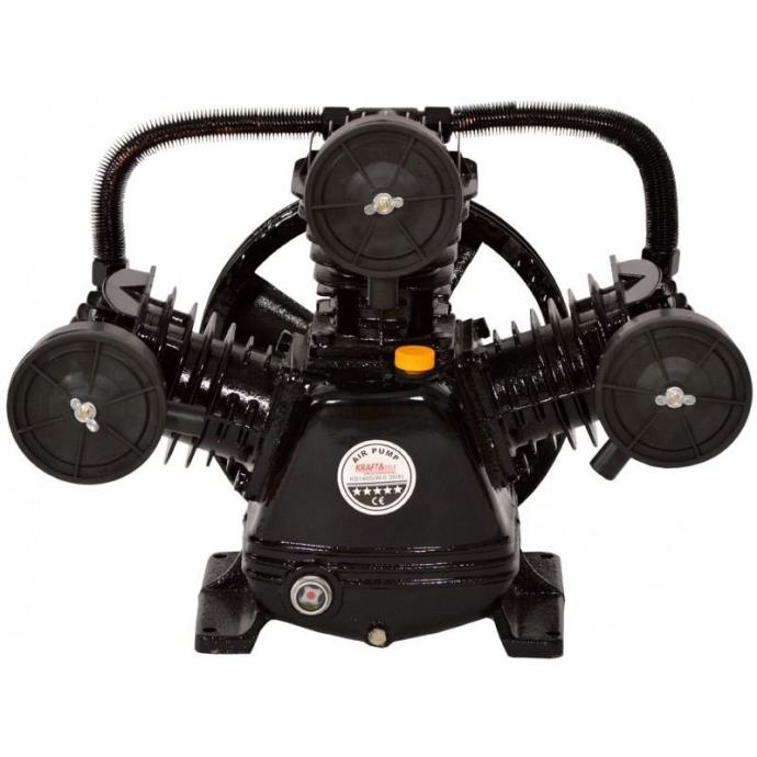 Glava kompresora s 3 klipa snage 5.5 kW osigurava iznimno snažan i stabilan protok zraka, što je čini idealnim izborom za profesionalne i industrijske kompresore.Trokilipna konstrukcija omogućuje ravnomjernu isporuku zraka uz smanjenje vibracija i buke, dok aluminijsko kućište s rebrima za hlađenje i ventilatorom osigurava učinkovito odvođenje topline.Pumpa koristi uljno podmazivanje, čime se smanjuje trenje i trošenje dijelova te produljuje vijek trajanja kompresora.Klipovi i ventili izrađeni su od precizno obrađenog alatnog čelika, što jamči pouzdan i dugotrajan rad čak i pri visokim opterećenjima.Zahvaljujući visokom kapacitetu protoka i konstrukciji prilagođenoj kontinuiranom radu, glava je savršena za automehaničarske servise, lakirnice, radionice i proizvodne pogone.Predstavlja vrh ponude kompresorskih glava po pitanju snage, učinkovitosti i pouzdanosti. Tehnički podaci:Tip proizvoda: Glava kompresora (zračna pumpa)Snaga: 5.5 kWBroj klipova: 3Kapacitet protoka zraka: cca 700–720 L/minMaksimalni tlak: 10 barBrzina vrtnje: 950 o/minSustav hlađenja: Zračno, aluminijsko kućište s ventilatoromNačin podmazivanja: UljeMaterijal: Aluminij i čelikSmjer vrtnje: Desni]]>