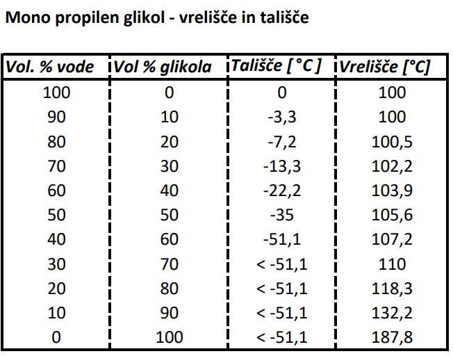 Među fotografijama možete pronaći vrelište i talište glikola u različitim koncentracijama s vodom.