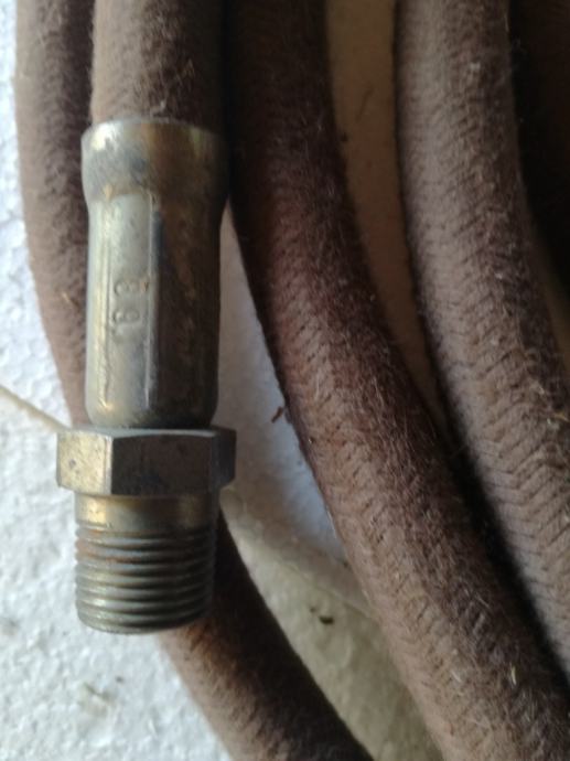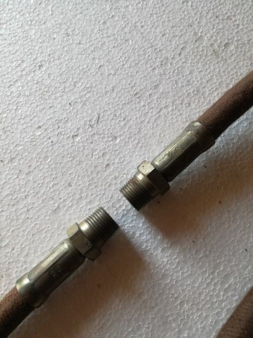 Oba crijeva su opletena tekstilom i armirana platnom, vanjski promjer 15 mm, promjer rupe 8 mm sa pripadajućim navojnim priključcima na krajevima; 3/4"x18 g/1"-muški x muški, maksimalni tlak 40 bara, radni tlak 30 bara.