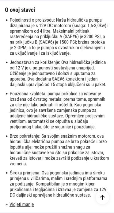Hidraulicna pumpa 12 v . sa vlastitim rezervoarom 4 l.