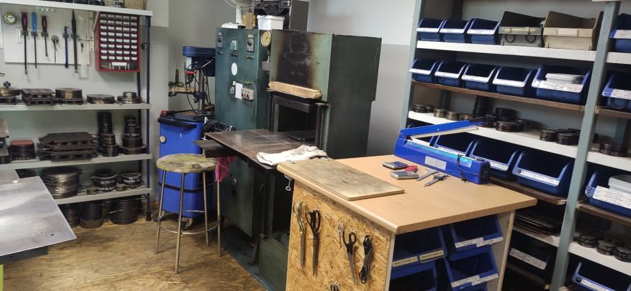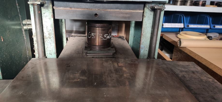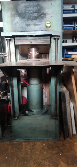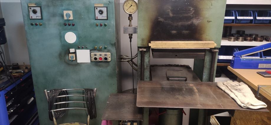 Hidraulična preša sa grijačim pločama za vulkanizaciju gumenih proizvoda.