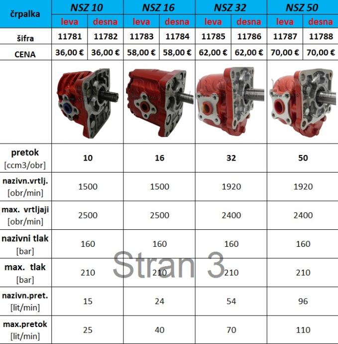 11782 - HIDRAULIČNA PUMPA NSZ – 6 ZUBA 10 CC DESNA