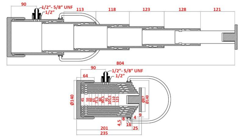Zbog niskog dizajna i namjene (zatvorena duljina 235 mm), petostupanjski hidraulični cilindar prikladan je za podizanje tereta, traktora ili traktorske priključke i za prijevoz kosih tereta.