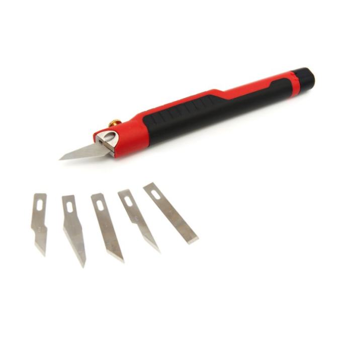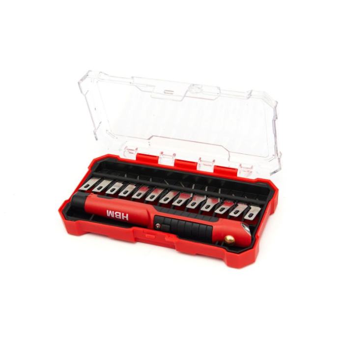 hobi nož je uvijek pri ruci za brzo rezanje konopa, kartona ili drugog materijala, tako da možete lako otvoriti pakete ili ukloniti materijal koji vam smetaset dolazi s trinaest noževa u pet različitih dizajna tako da možete koristiti pravi nož za različite posloveoštrice se mogu uvlačiti i izvlačiti tako da ih možete sigurno pohraniti i ponijeti sa sobomosim toga, oštrice se mogu brzo mijenjati, a hobi nož je opremljen LED svjetlom tako da možete pravilno rezati i na slabo osvijetljenim mjestimaset dolazi u kutiji za pohranuTehnički opis:materijal oštrice čelik (T10)materijal kućišta plastikatežina 94 grdimenzije pakiranja (DxŠxV) 13 x 8 x 2 cmisporučuje se kao standardnož za hobi13 noževakutija za pohranu]]>