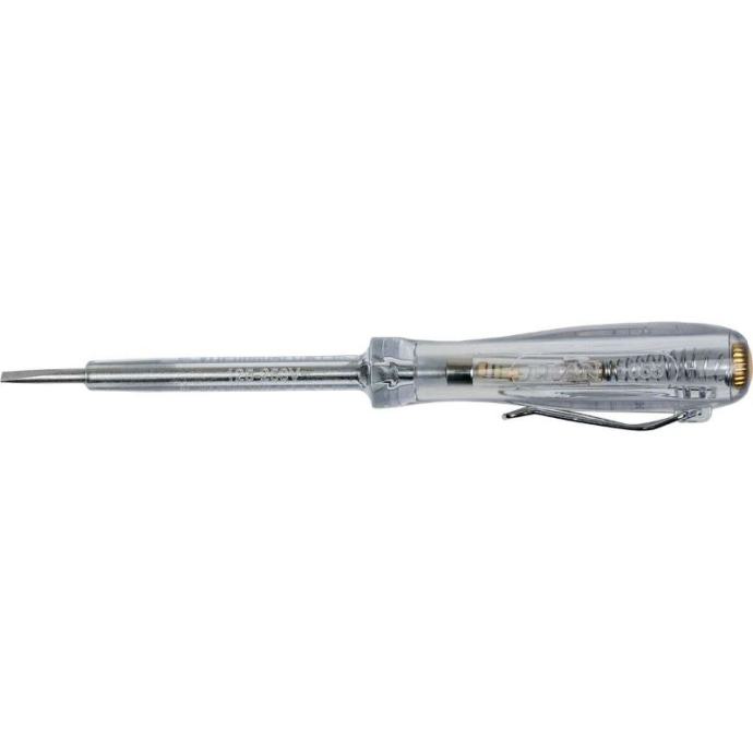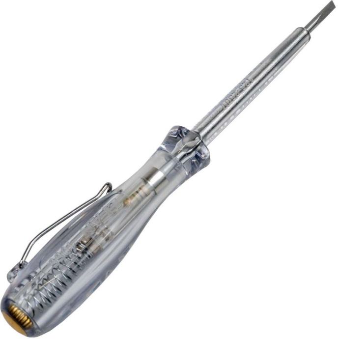 ispitivač napona 150MM VDE, S2 ČELIKuređaj koji se koristi za otkrivanje prisutnosti izmjeničnog napona (AC) u električnim instalacijamadizajniran za provjeru napona u rasponu od 125 do 250Vima svjetlosni indikator koji pokazuje napon u radnom područjuunutra se nalazi osigurač koji pruža dodatnu sigurnost za korisnika u slučaju prekoračenja raspona naponaopremljen metalnom kopčom koja vam omogućuje pričvršćivanje na džep, na primjer, radi lakšeg pristupaproizvod ima CE certifikatkategorija mjerenja CAT IIIu skladu s VDE 0680-6tester je dugačak 15 cm i ima ravni vrh od S2 čelikaTehnički podaci: tip: VDE ispitivač naponaradni raspon [V]: 125 - 250vrsta struje: izmjenična struja (AC)savjet: ravnaveličina vrha [mm]: 3.0CE certifikat: DaVDE standard: 0680-6kategorija mjerenja: CAT IIIsvjetlosni indikator: daukupna duljina [mm]: 150dimenzije paketa [mm]: 195x48x25težina [g]: 22]]>