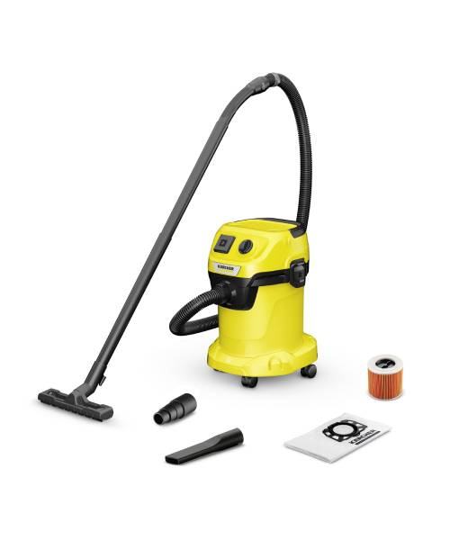 WD 3 P V-17/4/20 je moćan i energetski učinkovit s potrošnjom energije od samo 1000 W. Stroj, kao i usisno crijevo i podna mlaznica Clips savršeno su usklađeni – za najbolje rezultate čišćenja na suhom, mokra, fina ili gruba prljavština. Usisavač za mokro i suho usisavanje impresionira svojim kompaktnim dizajnom i robusnom plastičnom posudom od 17 l, kabelom od 4 m, usisnim crijevom od 2 m i vrećicom za filter od flisa. Zahvaljujući jednodijelnom uloškom filteru moguće je usisati i mokru i suhu prljavštinu bez zamjene filtera. Preko integrirane utičnice s automatskim prekidačem za uključivanje/isključivanje mogu se spojiti električni alati poput pila ili brusilica, a nastala prljavština može se izravno usisati. Funkcija puhala korisna je za čišćenje teško dostupnih područja. Crijevo se sprema tako da se objesi na glavu stroja, čime se štedi prostor. Kabel se može pohraniti na kuku za kabel, cijevi i podne mlaznice na braniku. Sustav zaključavanja “Pull & Push” omogućuje jednostavno otvaranje i zatvaranje spremnika. Ručka usisavača može se ukloniti, a pribor se može spojiti izravno na usisno crijevo.