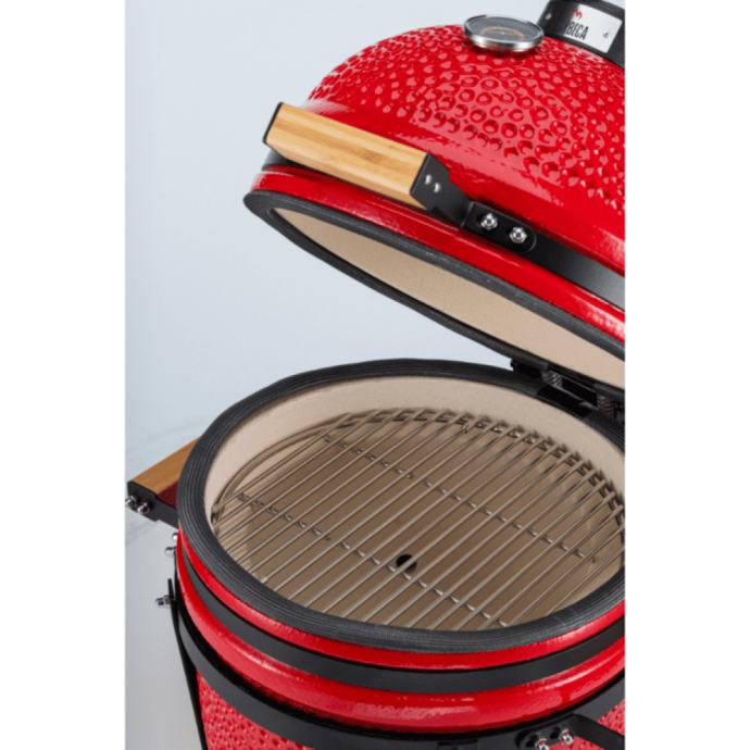Odličan za upotrebu na balkonima i terasama, kampiranjima, pa čak i izletima (ali pazite, težak je 39 kg!). Dovoljno je velik da nahrani do šest ljudi te se brzo i jednostavno postavlja. Pogodan je za razne tehnike pripreme hrane, bilo da pečete ribu na indirektnoj vatri ili sporo pečete neki veći komad mesa. Pravi dokaz da dobre stvari ponekad dolaze u manjim pakiranjima. Ovaj kamado također ima i premium brtvu od stakloplastike.
