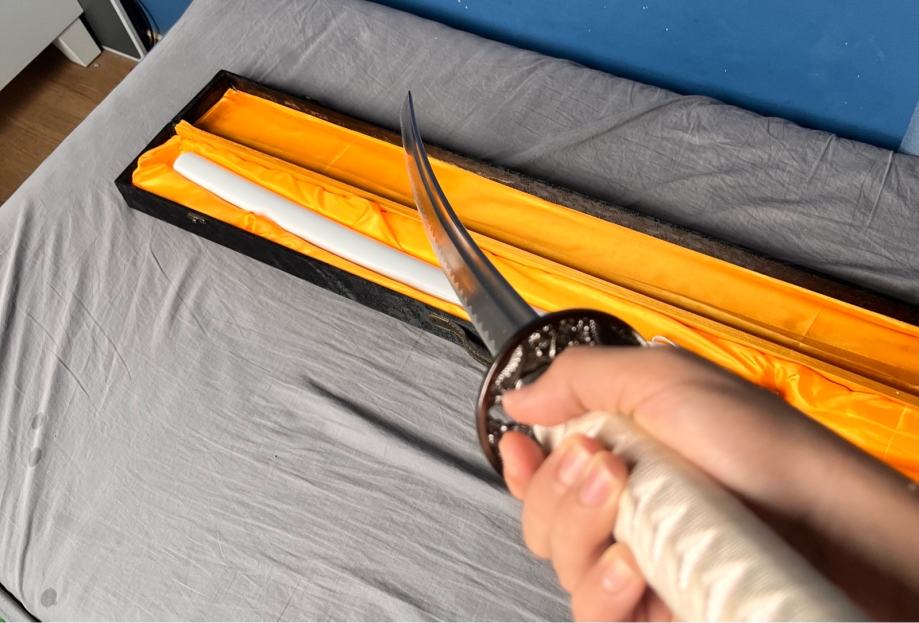 Katana kupljena u 11.mjesecu 2025 te nije bila korištena samo je bila isprobana od tada stoji u svojoj kutiji.