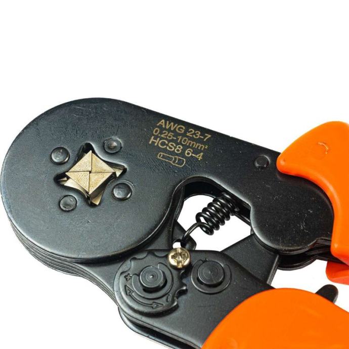 kliješta za stezanje - 0,25-10 MM2,6-4alat za trajno i sigurno spajanje električnih žica pomoću rukavacaposebno profilirane čeljusti omogućuju precizno stezanje čaura na različitim veličinama žica, osiguravajući čvrstu električnu vezuzahvaljujući poluzi, krimpanje se izvodi velikom snagom, što jamči trajan spojkliješta su opremljena gumbom koji omogućuje podešavanje sile stezanja na 6 razinačetverokutni sustav stezanjaTehnički podaci: duljina: 175 mmraspon prešanja: 0,25-10mm2AWG23-7HCS8 6-4težina: 385gtežina s pakiranjem: 425g]]>