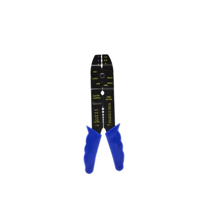 alat za skidanje žice koji se uglavnom koristi za neizolirane priključke uključujući priključke za paljenjeproizvod ima više namjena, uključujući skidanje i rezanje žiceTehnički podaci: raspon presovanja: 0,5 - 5,0 mm²kapacitet žice za skidanje izolacije: 0,5 - 5,0 mm²rezni vijci i vijci: M2.6, M3, M3.5, M4, M5čeljusti ojačane ugljičnim čelikom, kaljene i kemijski pocrnjeneoblikovane ručke za držanje]]>