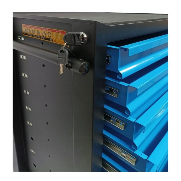centralna brava sa setom od 3 ključa zaključava sve ladice odjednom, štiteći alat od neovlaštenog pristupa