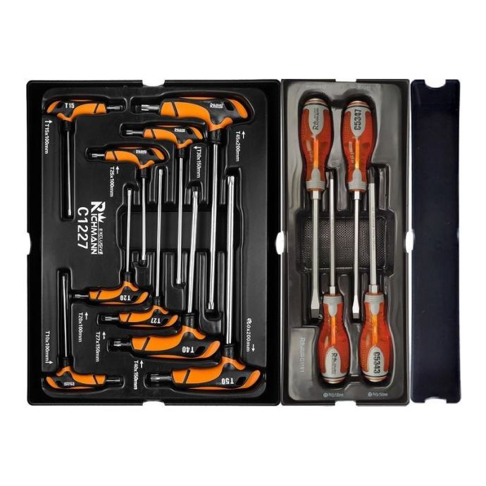 C1207 Set bitova, šesterokutni ključ H4-H14, TORX T20-T70 i TORX E4-E24 ključevi, čelik S2, 55 komada