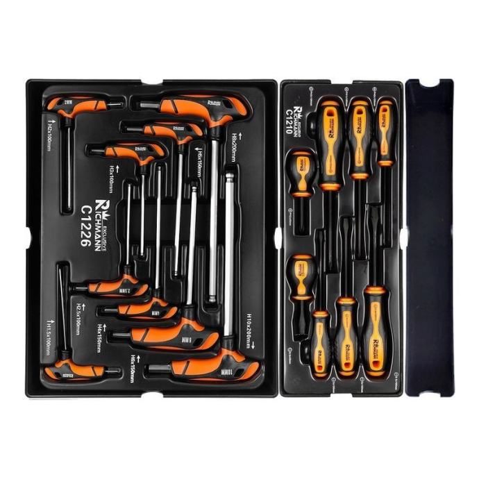 -ladice postavljene na kliznim kugličnim ležajevima otvaraju se do samog kraja i daju potpuni pristup umetcima alata