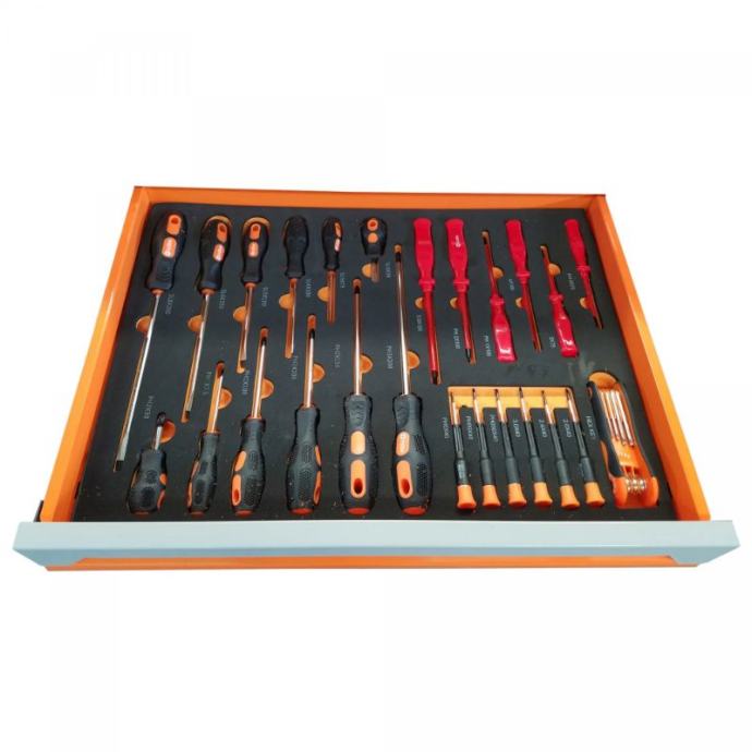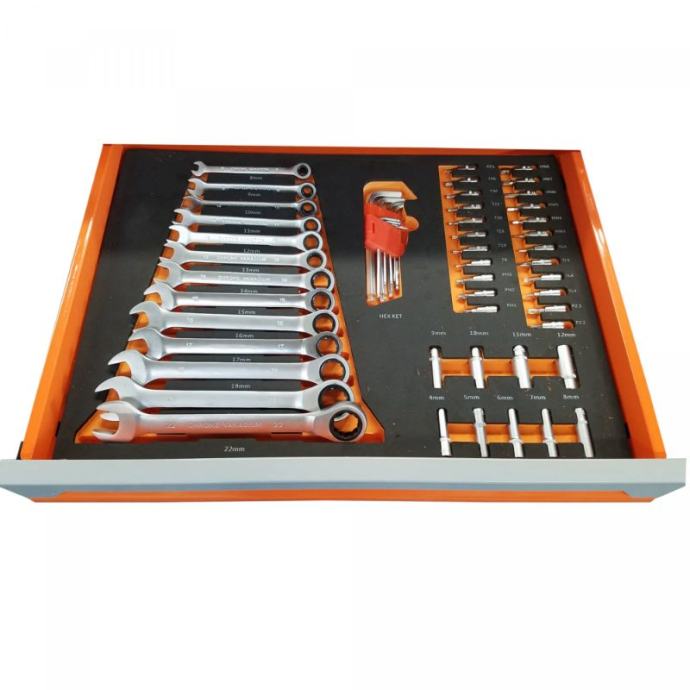 sa širokim asortimanom setova nasadnih ključeva, ključeva, odvijača, kliješta i više, nikada se nećete morati brinuti da nemate pravi alat za posaoevo kratkog pregleda onoga što je uključeno:Izdržljivo, organizirano rješenje za pohranu alatanema više gubljenja vremena na traženje alata - naš izdržljivi ormar za alat dizajniran je da sve drži organizirano i na dohvat rukečvrsta metalna konstrukcija osigurava da su vaši alati zaštićeni i sigurni, dok prostrani raspored s četiri ladice pruža dovoljno prostora za svu vašu opremurecite zbogom neurednim radnim stanicama i izgubljenim alatimaTehnički podaci: 1. ladicaset nasadnih ključeva 1/4"1/4" ključ sa čegrtaljkom, 1 kom1/4" ključevi, 13 kom (4, 4.5, 5, 5.5, 6, 7, 8, 9, 10, 11, 12, 13, 14 mm)1/4" nastavak, 1kom: 100mm1/4" nastavak, 1kom: 50mm1/4" spojni adapter, 1 kom1/4" klizna T-šipka, 1 kom: 110 mm1/4" sprinter ručka, 1 komset nasadnih ključeva 3/8"ključ sa čegrtaljkom 3/8", 1 kom3/8" ključevi, 15 kom (6, 8, 9, 10, 11, 12, 13, 14, 15, 16, 17, 18, 19, 21, 22, 24 mm)3/8" nastavak, 1kom: 75mm3/8" nastavak, 1kom: 150mm3/8" spojni adapter, 1 kom3/8" klizna T-šipka, 1 kom: 160 mmSet nasadnih ključeva 1/2".1/2" ključ sa čegrtaljkom, 1 kom1/2" ključevi, 17 kom (10, 11, 12, 13, 14, 15, 16, 17, 18, 19, 21, 22, 23, 24, 27, 30, 32 mm)1/2" nastavak, 1 kom: 250 mm1/2" nastavak, 1kom: 125mm1/2" spojni adapter, 1 kom1/4" klizna T-šipka, 1 kom: 250 mm2. ladicakombinirani ključ s čegrtaljkom, 13 kom (8, 9, 10, 11, 12, 13, 14, 15, 16, 17, 19, 21, 22 mm)1/4" nastavci, dugi, 9 komada (4, 5, 6, 7, 8, 9, 10, 11, 12)1/4" nastavci, 23 kom (PH1, PH2, PH3, T8, T10, T15, T20, T25, T30, T40, PZ1, PZ2, PZ3, SL4, SL4, SL5, SL6, HW3. HW4, HW5, HW6, HW7, HW8)set šesterokutnih ključeva, loptasti kraj, 9 komada (1,5, 2, 2,5, 3, 4, 5, 6, 8, 10)3. ladicaprecizni odvijač, 6 kom (PH0x40, PH00x40, PH000x40, 3.0x40, 2.4x40, 2.0x40)set ključeva Torx, 8 kom (T9, T10, T15, T20, T25...)set izoliranih električnih odvijača, 6 kom (PH0x75, 3x75, 4x100, PH1x100, PH2x100, 5,5x125)odvijač, 12 kom (6x38, 3x75, 4x100, 5x100, 6x150, 8x200 ravni odvijači, 2x38, 0x7.5, 1x100, 2x100, 2x150, 3x100 PH odvijači)4. ladicakliješta za brave, 1 komkliješta za pumpu, 1 komdugačka kliješta, 1 komkombinirana kliješta, 1 komdijagonalna kliješta, 1 komkliješta za unutarnje uskočnike savijena, 1 komravna kliješta za uskočni prsten, 1 komkliješta za vanjske uskočnike savijena, 1komkliješta za vanjske uskočnike ravna, 1 komnavedena količina se odnosi na alat i pribor zajedno. Stvarni broj komada može se razlikovati za ± 5%]]>