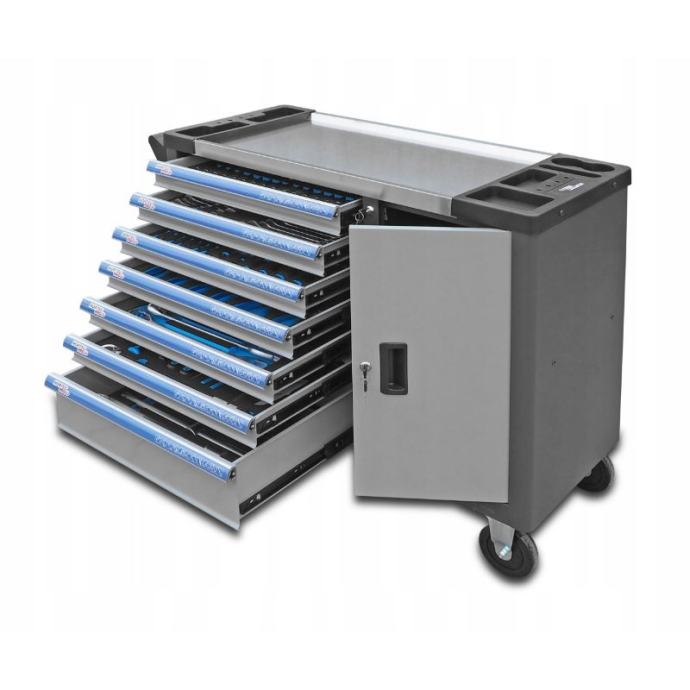 skup alata za popravke kamionaalati su raspoređeni u pjenaste umetkejednostavna kontrola statusa alata, eliminirajući rizik da alat ostane na mjestu radabroj elemenata 140 komadakolica za alat čvrsto su i funkcionalno rješenje dizajnirano za servisiranje kamionaopremljen sa 140 komada, nudi širok izbor alata, poput nasadnih ključeva do 50 mm, viljuškastih i okastih ključeva, odvijača i nasadnih ključeva za udarne ključeve.konstrukcija od 95 kg jamči stabilnost i izdržljivost, dok radna ploča od čvrstog čelika pruža udoban radni prostor]]>