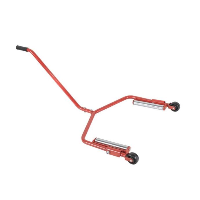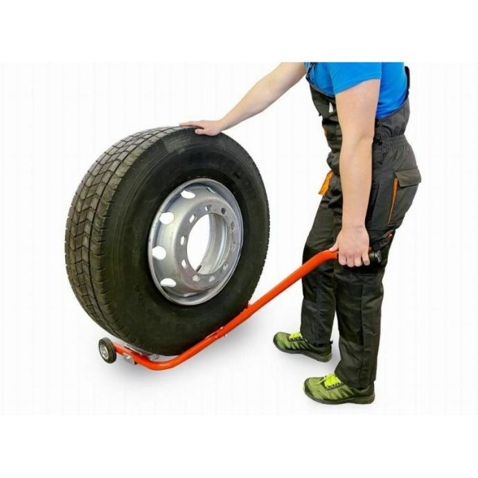 Izdržljiva kolica za prijevoz kotača teških i putničkih vozila. Dizajniran je za jednostavno podizanje i pomicanje guma i kotača, eliminirajući potrebu za podizanjem teških tereta.Namjena: Idealno za servise kamiona i automobila. Omogućuje jednostavno i sigurno rukovanje kotačima za teška i putnička vozila.Ergonomska ručka: Ergonomska ručka omogućuje potpunu kontrolu nad kolicima od strane jednog mehaničara.Radni raspon: Kolica su dizajnirana za transport kotača teških ili putničkih vozila. Maksimalna nosivost: 100 kg.Konstrukcija: Kolica su opremljena valjcima koji se mogu postaviti u tri položaja ovisno o veličini kotača koji se transportiraju. Dva glatka, okretna valjka omogućuju precizno pozicioniranje gume/kotača na glavčini. Ovi se valjci mogu koristiti u tri različita položaja, olakšavajući transport različitih veličina guma/kotača. Tijekom sastavljanja, valjci pomažu rotirati gumu ili kotač za 360 stupnjeva u bilo kojem smjeru, što olakšava ugradnju kotača na vozilo.]]>