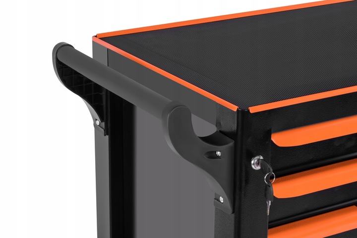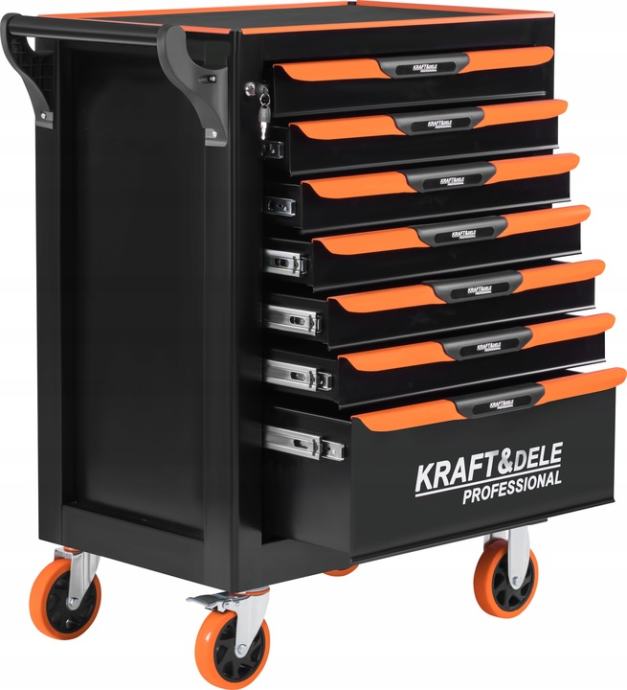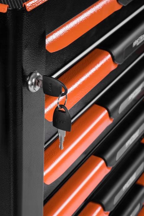 Robusna radionička kolica nezamjenjiv su dio opreme za svaku radionicu. Opremljena sa sedam ladica s kugličnim ležajevima, podstavljenom čeličnom radnom pločom i centralnim sustavom zaključavanja, osiguravaju praktično i sigurno skladištenje alata i pribora. Korišteni materijali i promišljena rješenja čine kolica idealnim za profesionalce i kućne korisnike.